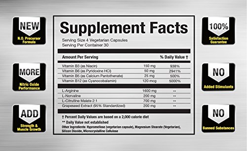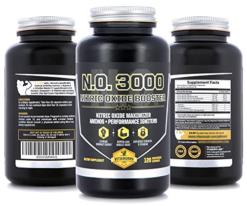 Vitamorph Labs N.O. 3000 Nitric Oxide Booster for Lean Muscle Mass and Pumps L-Norvaline, Grapeseed, L-Citrulline Malate, L-Arginine, B-Vitamins, 120...