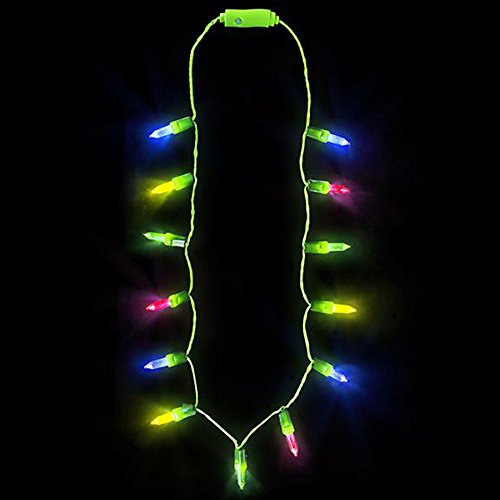 Some festively fun holiday jewelry for the Christmas season and beyond. Christmas light necklace makes and excellent stocking stuffer. Perfect accessory to any Holiday outfit. Multi-mode flashing LEDs, batteries included. Each piece in polybag with printed header. One piece per unit.Feature