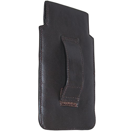 Attractive, felt-lined leather phone holster easily attaches to belt for secure, convenient access!