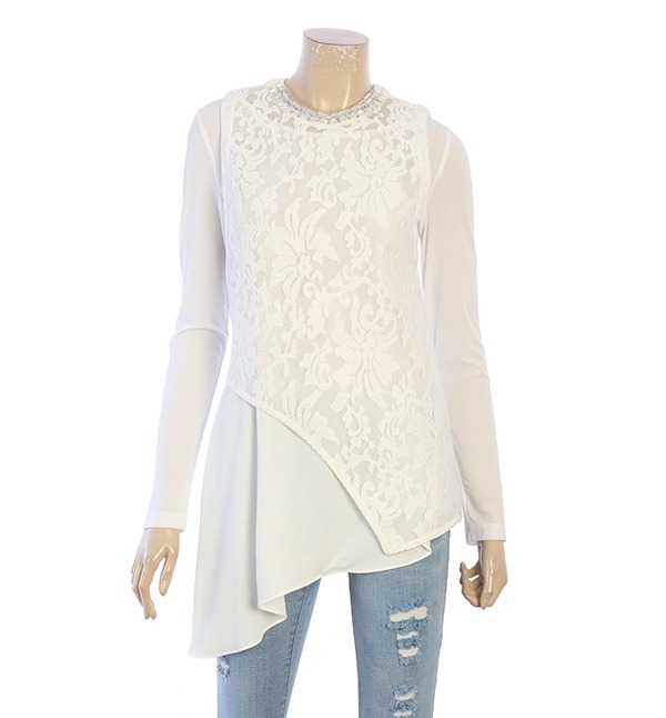 Doho , 네크라인 비즈장식과 플라워레이스가 어우러져 우아하고 여성스러운 무드를 자아내는 블라우스입니다