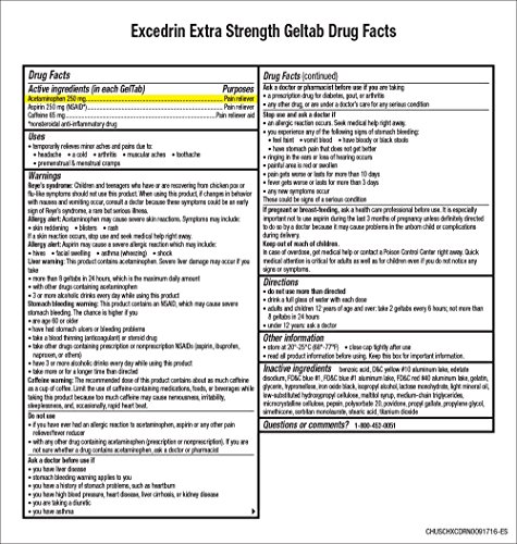 ReleaseDate : 2015-08-18 Studio : Excedrin Publisher : Excedrin Binding : Health and Beauty Product Description Fast. Trusted. Relief. The Excedrin brand has been a leader in headache pain relief for more than 50 years. Select from a family of effective, over-the-counter pain relievers for a range of headache types. Available in caplets and geltabs. 0
