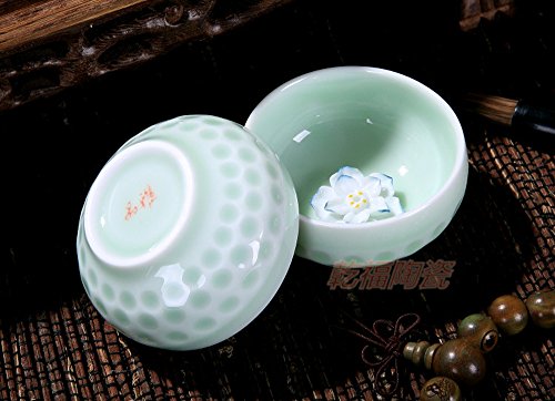 -. Brand : Zhumutang -. Feature : Long-quan celadon represents the Ancient Celadon of the highest level / Exquisite handwork, delicate decoration / Unique design, a three-dimensional lotus in the middle of the cup / Bring you a relaxed momnent, best gift for everyone / Dimensions: 2.5"x 1.3" , Capacity:50ml, a set of 4 -. PackageQuantity : 4 -. ProductGroup : Kitchen -. ProductTypeName : KITCHEN -. Title : Zhumutang® China Long-quan Celadon Teacup,kungfu Teacup, Lotus Pattern, set of 4