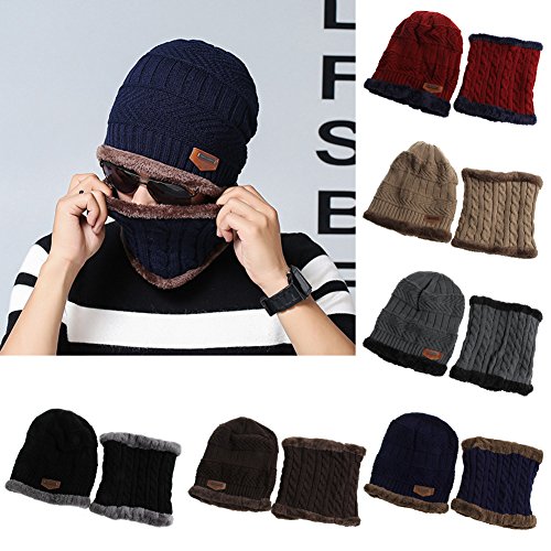 | Best-topshop Men Beanie Winter Baggy Warm Wool Fleece Ski Hat Neckerchief Set |