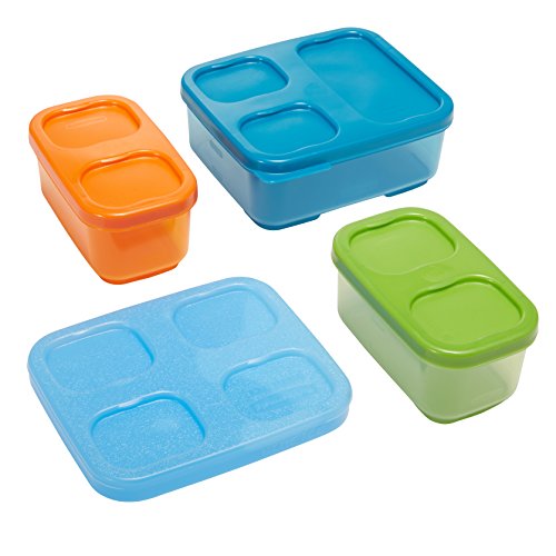 Kit Includes: 1 Sandwich Container (2.6 cup capacity), 2 Side Containers (1.2 cup capacity) and 1 Medium Blue Ice freezer pack (Size: 4.8 " L x 5.6 " W x 5.3 " H when stacked)