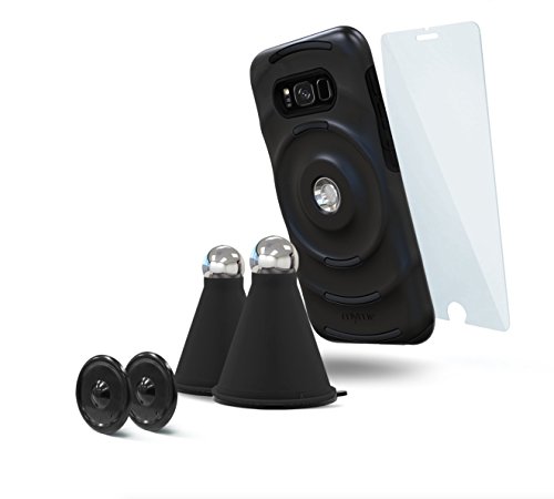 MyMe Unity System Bundle, Magnetic Mount for Car, Home & Office with Dual Layer Protective Case, Free Extra Cradle and Free Tempered Glass for Samsung 8 (Black)