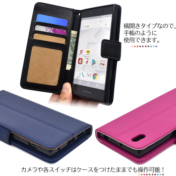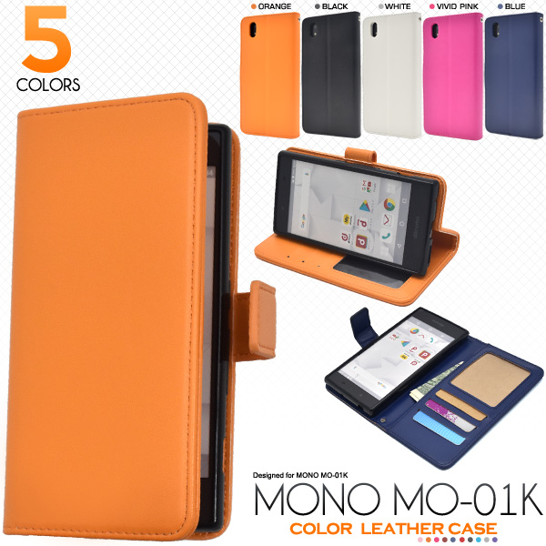 | カラフルな5色展開!MONO MO-01K用カラーレザー手帳型ケース |