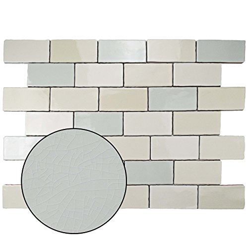 SomerTile WCVANCMX Antigue Craquelle Mix Ceramic Wall Tile, 3" x 6", White/Beige/Blue