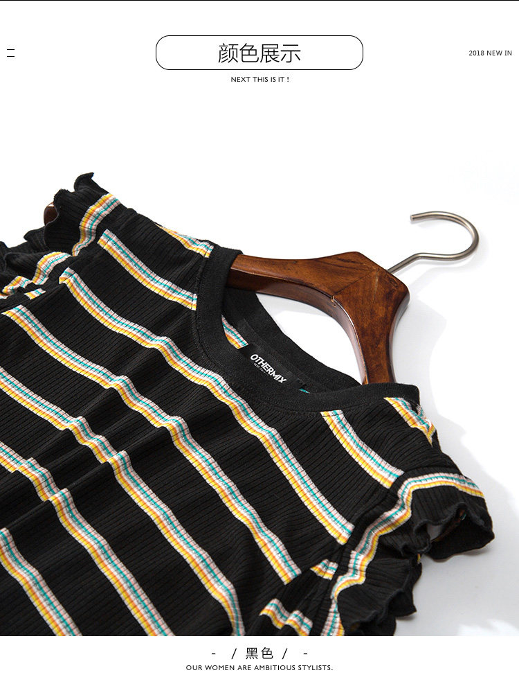 | Anne | 150 | 44 | 82/65/88 | S | 条纹面料质感好,撞色条纹的设计显得靓丽 |