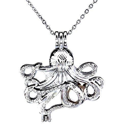 Octopus Pearl Cage - Silver Ocean Octopus Locket Pendant Necklace