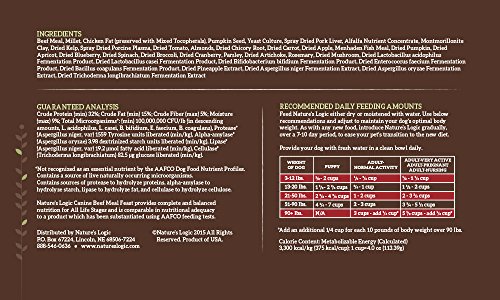 Complete and balanced dog food for all life stages. Highly palatable and nutrient dense meat based dry foods with concentrates of select fruits and vegetables. All nutrients are derived only from whole foods and natural ingredients. Free of common allergens or ingredients high in sugar like wheat, corn, rice, soy, potato, peas or sweet potatoes. No chemically synthesized vitamins, minerals, or trace nutrients; artificial flavors, colors or chemical preservatives. Each dry diet is specially coated with probiotics and digestive enzymes to increase nutrient absorption and aid in digestion.Feature
