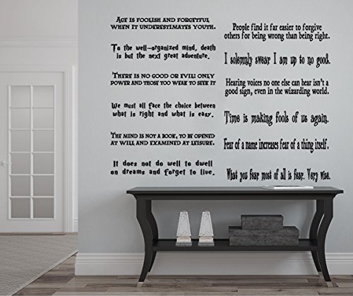 Hogwarts Set of 12 Quotes Harry Potter Inspired Vinyl Wall or Stairs Decals [BLACK] by GMDdecals Dumbledore Sirius Wizard Decor Size 24" x 2-4" per quote