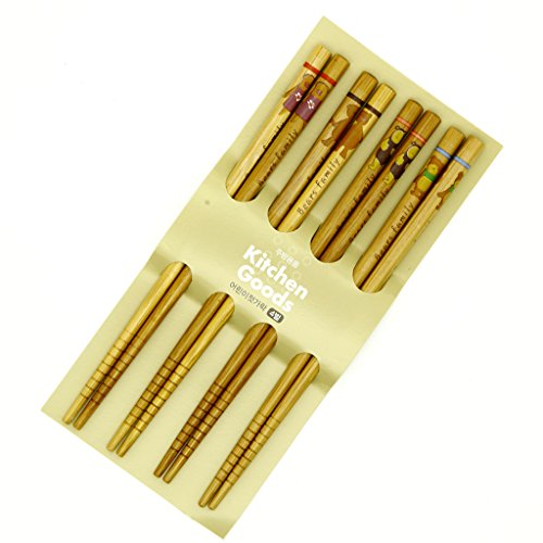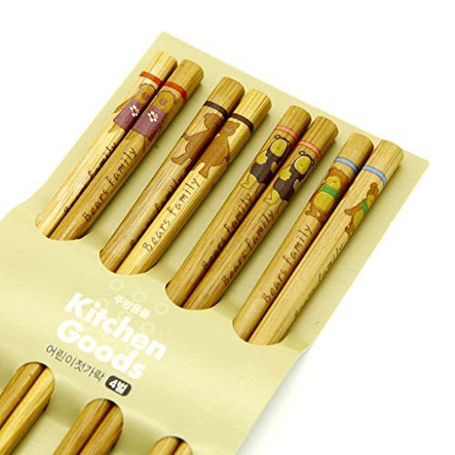 4 Pairs Bamboo Chopsticks Set 7", Anti-slip Design, Japanese Style (brown)