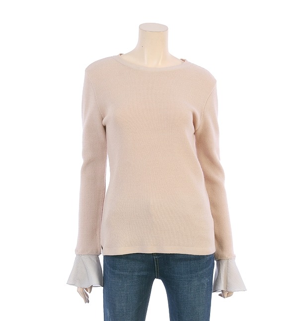 LINE, 배색 러플 소매로 포인트를주어 트랜디한 스타일 감각을 연출하는 티셔츠입니다