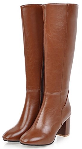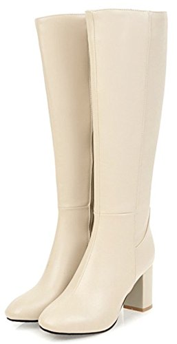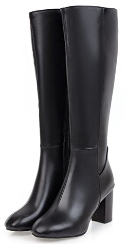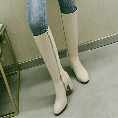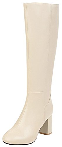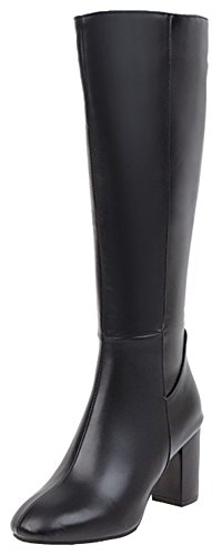 (Mofri)/Women's/Boots/DIRECT FROM USA/Mofri Women's Chic Splicing Block High Heel Round Toe Side Zipper Under The Knee High Boots