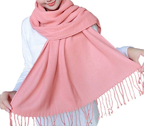 Women Warm Scarf Cashmere Feel Solid Long Shawl Wrap With Fringe