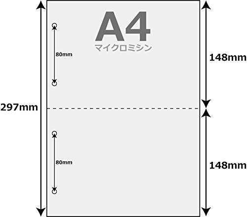 A4 size vertical (210 mm × 297 mm) perforation length after cutting 210 mm × 148 mm with 4 file holes (2 hole interval is 80 mm) Can also be used for inkjet printers, copiers, thermal transfer printers.
