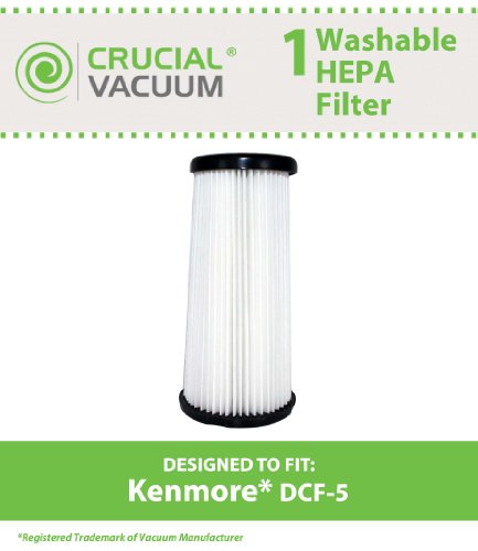 -. Feature : Washable Kenmore DCF-5 Allergen Filtration Replacement HEPA Filter by Crucial Vacuum / Fits All Sears Kenmore Quick Clean Models including Model 618683 / Compare to Part # 02080011000 & 02039000000 / If you have allergies, this filter is absolutely essential for Allergy Sufferers! 99.97% Allergen Filtration / Designed & Engineered by Crucial Vacuum