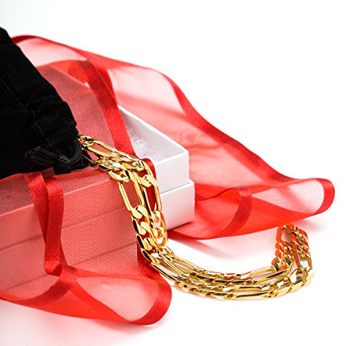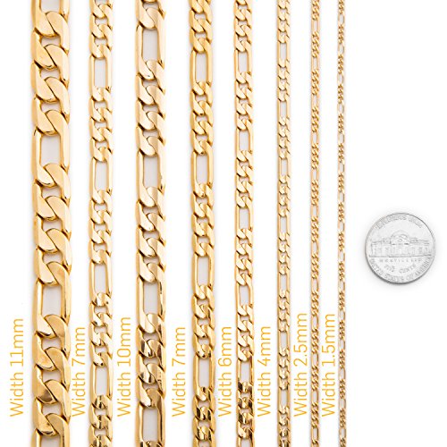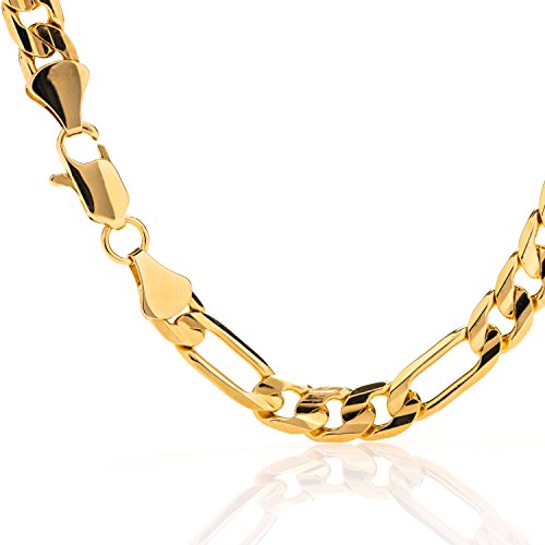 - Feature : ►Real 24 Karat gold, laid over a heart of semi-precious metals. 7 MM Figaro 18"-30". 20mls of 24 karat gold per chain - 10 times more gold than in the cheaper electroplate that changes color quickly ►BEWARE OF CHEAP IMITATIONS! LIFETIME WARRANTY GUARANTEED ONLY WHEN SOLD BY LIFETIME PRODUCTS GROUP & SHIPPED BY AMAZON! / ►Trade secret special SEMI-PRECIOUS alloy of the best bonding metals ensures the LOOK OF SOLID GOLD and LONG LIFE of the item. Email us for more size options, check out our matching Bracelets! / ►Crazy low Amazon introductory prices for a limited time only! Ideal for men, women, teens. Makes a great GIFT (comes in a small cotton filled gift box) / ►100% UNCONDITIONAL FREE LIFETIME REPLACEMENT GUARANTEE ON ALL LIFETIME JEWELRY ITEMS! In business since 1978! ►Due to the fact that each piece is hand made, sizes may vary slightly / ►We only use 24k GOLD (THE PUREST form of gold) instead of 10k or 14k! No cheap metals like steel, copper (turns green) or nickel (toxic) as a usual fashion jewelry base