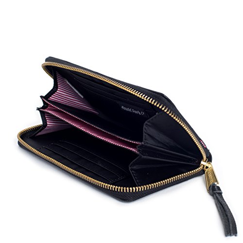 The full zip Thomas is a classically styled full grain leather accordion wallet, offering room for change, paper currency, cards and a mobile phone.