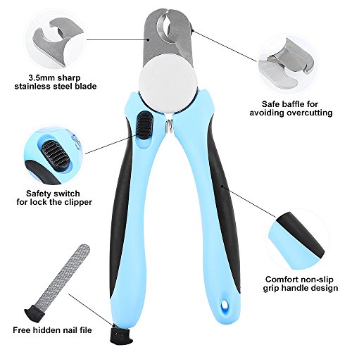 -. Title : Dog Nail Clipper and Grooming Brush 2 Pack, Honfei Pet Grooming Tools Kit, Pet Safety Guard Nail Clippers with Sharp Stainless Blades and Retractable Puppy Dog Deshedding Grooming Comb