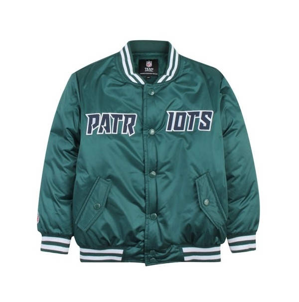 블루종 기장의 패딩 야구점퍼로 스트라이프 시보리와 앞, 뒤 아플리케 팀마크 그래픽이 포인트인 아이템입니다.