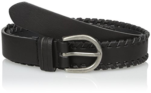 Product DescriptionFaux leather jean belt with whip stitch detail along the edges, offers 5 holes for adjustability0