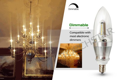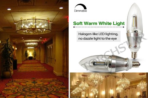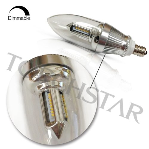 - Title : 4W Dimmable LED Candle Light - 2700K Warm White E12 Base Candelabra Bulb - 40W Halogen Replacement - Chandelier Mate