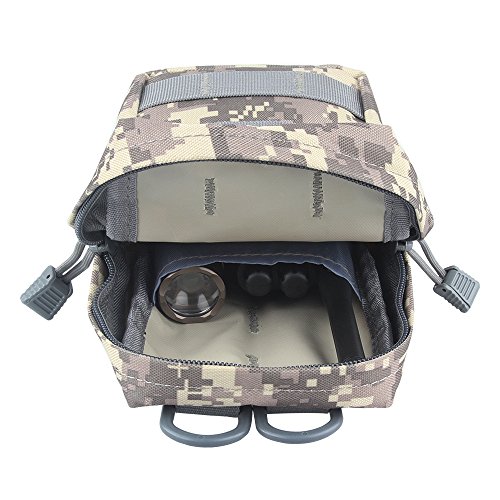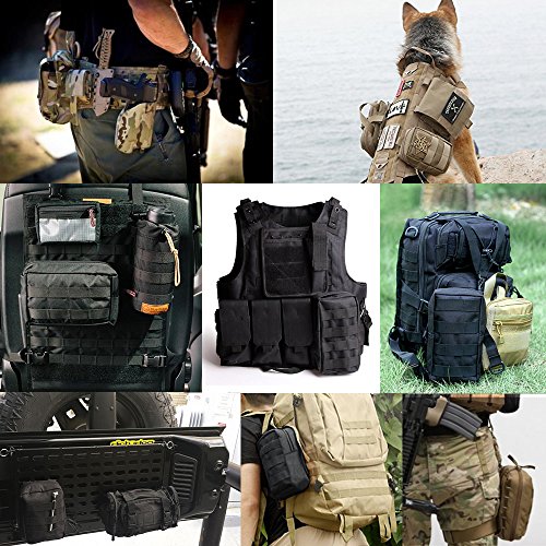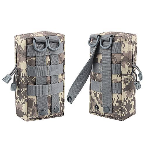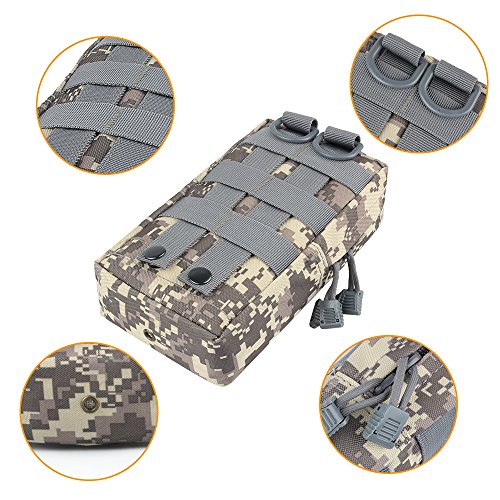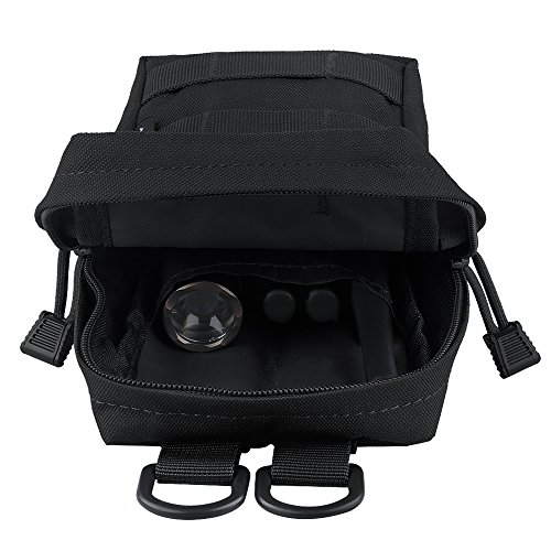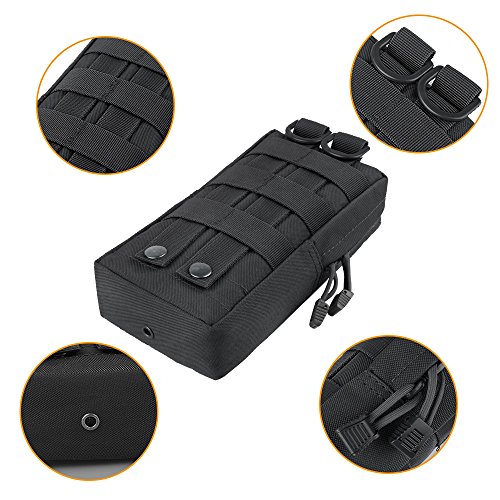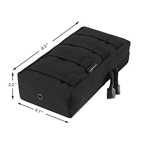 -. Feature : One item includes 2 tactical pouches. Dimensions: 8.3" x 4.7" x 2.2". Constructed by durable 600D nylon material and internal surface are made of waterproof material. 12 Months Warranty. / The tactical pack has vinyl sewed inside to keep moisture from soaking through to the material on to the outside, and a steel drain hole rivet in the bottom. / The molle attachment bag with 2 buckle straps on the back could be attached to tactical backpack, combat vest or other tactical gears as an extra exterior pouch or carry it as a normal pouch to secure essential gears. / The utility molle pouch with two-way zippers in silent cord pulls allows you to quickly zip the military pouch shut from either both sides or access just one side of the tactical pack without completely opening it. / The main compartment and internal pocket is perfect for storing cell phone, tactical pen, keychain, GPS device, digital cameras, medical supplies, ammo, paracord or any necessary gadgets you need.