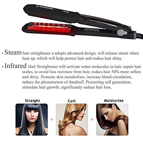 - STEAM HAIR STRAIGHTENER: This steam hair straightener is designed with the newest steam function to straighten thick or coarse hair, makes your hair silk smooth and the frizz. Your hair will be moisture and shine back by using the cold steam conditioning while you straighten