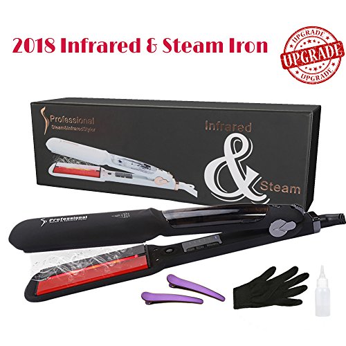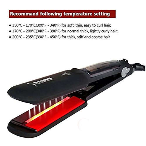 Infrared Steam Hair Straightener, Professional Salon Flat Iron 2 Inches Wide Plate Hair Steam Styler Ceramic Tourmaline Vapor Heater Hair Straightening Iron with Anion Care (Black)