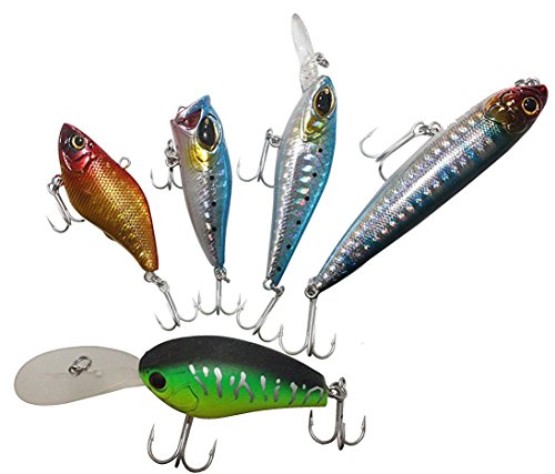 -. Feature : Funny Sound:Conqueror saltwater fishing lures have metal balls inside,which can attract bass with rattle easily. / VMC Hooks:These bass lures have VMC sharp hooks,which made from France with high quality. / Real Eyes:The walleye fishing lures are more attractive because of 3D high simwlation fish eye. / Vivid Action:Our freshwater fishing lures set can provoke predator to bite due to their life-like swimming actions in water. / Rich Species:The fishing lures set contains 5 different types includes Popper,Crankbait,Minnow,Swimbait and Pencil lure.