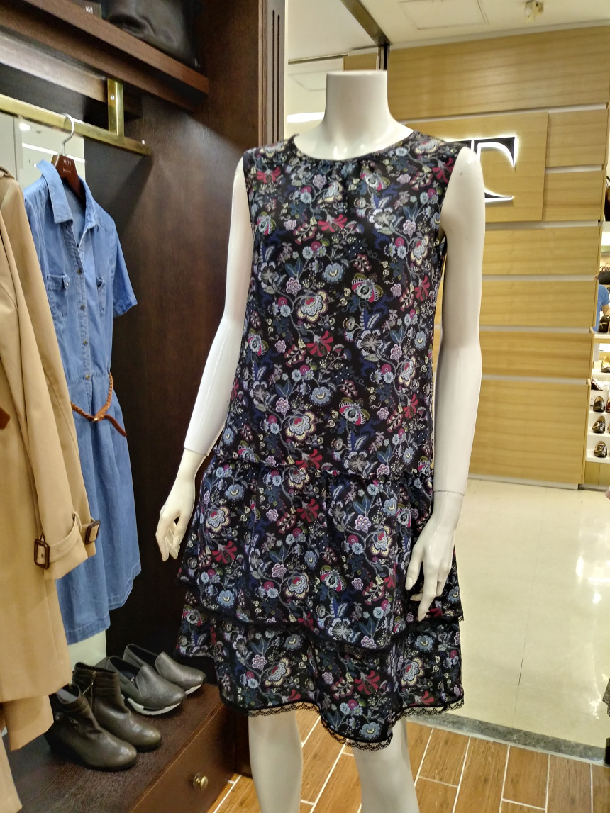 기비~민소매에 물결무늬로 층이 있어서 여성스럽고 클래식해보이며 폴리소재여서 착용하였을때 시원하고 가볍습니다 쟈켓이나 카디건안에 입으셔도되는 실용적인 원피스입니다 총장은 90센치입니다