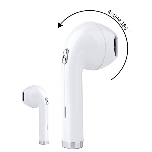 -. Feature : Bluetooth V4.1 Wireless Technology:Single earbud can be quickly paired with smart phones, as well as a variety of Bluetooth devices. Can connect with 2 different devices at the same time and would connect automatically with a phone paired previously. / Strong Signal- Designed with built-in microphone and DSP intelligent noise reduction, automatically sense the surrounding environment, work well to determine and reduce noise, make call more clearly. / Rotation Design :180-degree rotation,it fits in both right and left ears.Comfortable Wearing- Can be wore strongly with ergonomic design, no wire wrapped around the neck;also, ultra-lightweight, weighs only 4g, will not hurt during the long-time wearing. / Longer Battery Life:Ultra-low power consumption,60MA lithium battery which allows for 3-4 hours of play music/call time and 120 hours of stand-by with a single charge of 1-2 hours. Bluetooth pairing, power on and power off, pretty easy to use. / Compatible with Most Devices: Can be used with all Bluetooth enabled mobile phones such as Apple IPhone 8 X 7 7 Plus 6S 6S Plus, as well as iPad 2, 3, 4, Android, Samsung, Galaxy, Bluetooth enabled smartphones and devices.(NOTE: package only contains 1 earphone for both ears)