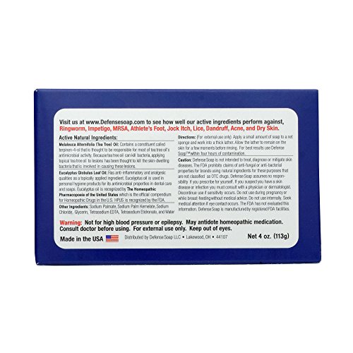 Defense Soap 4 Ounce Bar (Pack of 5) - 100 Percent Natural Pharmaceutical Grade Tea Tree Oil and Eucalyptus Oil