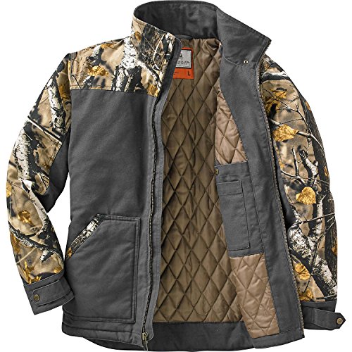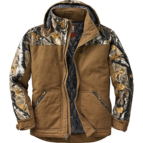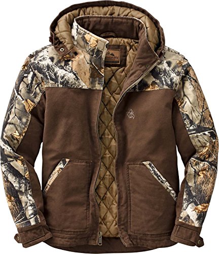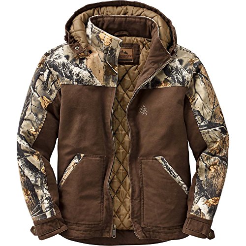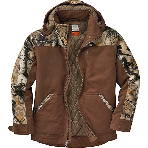 Studio : Legendary Whitetails Publisher : Legendary Whitetails Product Description Built tough to work hard and play even harder! The heavy duty 10 oz. sanded canvas is washed down for a comfortable fit right off the bat. Features a full 210 grams of insulation, heavy duty zipper, double interior pocket and zip-off hood. Big Game® Camo accents and embroidered logo. Big Tall sizes are designed for men over 6'2" and add 2" in body length and 1-1?2" in sleeve length Small - Neck - 14 - 14-1/2" - Chest 34 - 36" - Sleeve 32 - 33" Medium - Neck - 15 - 15-1/2" Chest - 38 - 40" - Sleeve - 33 - 34" Large - Neck - 16 - 16-1/2" - Chest 42 - 44" - Sleeve 34 - 35" XL - Neck - 17 - 17-1/2" - Chest - 46 - 48" - Sleeve - 35 - 36" 2XL - Neck - 18 - 18-1/2" - Chest - 50 - 52" - Sleeve 36 - 37" 3XL - Neck - 19 - 19-1/2" - Chest 54 - 56" - Sleeve - 37 - 38" Material: Shell - 100% Cotton Lining - 100% Polyester Wash: Machine wash cold with like colors. Tumble dry low. Do not bleach. Do not iron. Do not dry clean. 0 |