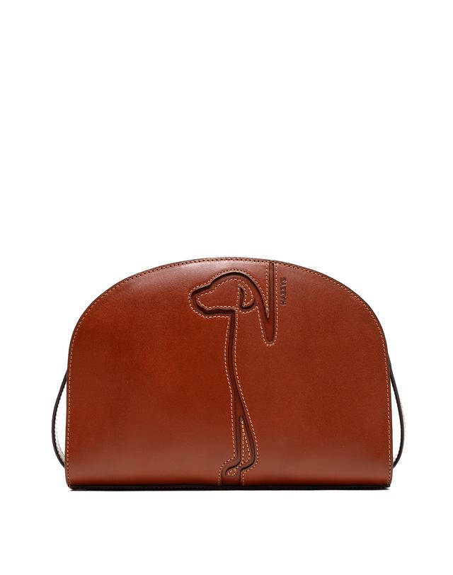 깔끔한 브라운 가죽 바탕에 골드 로고와 퍼피 음각 쉐이빙으로 포인트를 준 반달 크로스백 입니다.