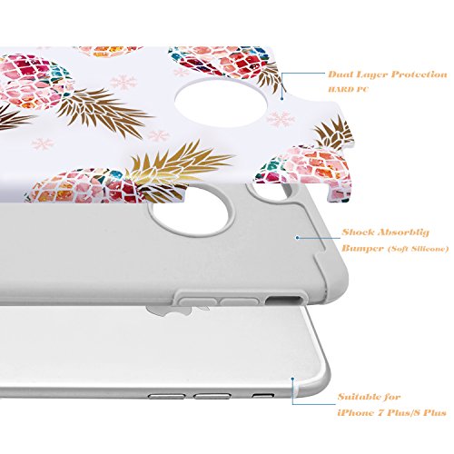 -. Feature : Pineapple Pattern case designed for Apple iPhone 8 Plus/iPhone 7 Plus (5.5 inch)only, Not compatible with other phone version,No screen protector. / Modern and fashion design,popular elements,foral colorful pineapple&christmas snow texture pattern,makes your phone different and eyes-catching. / Dual hybrid layer design&protection,anti-scratch hard PC outshell and shock absorption inner soft silicone bumper,give protection to your iPhone 8 Plus/iPhone 7 Plus. / Slim fit lightweight phone case,iPhone 7 plus case for girls,iPhone 8 plus case for women,raised bevel lip on front of case can help protect your phone screen against scratches. / Perfect fit your iPhone 8 Plus or iPhone 7 Plus with easy access to all buttons and ports,and construct with enclosed buttons to prevents holes from dust and lengthen the buttons lifespan.