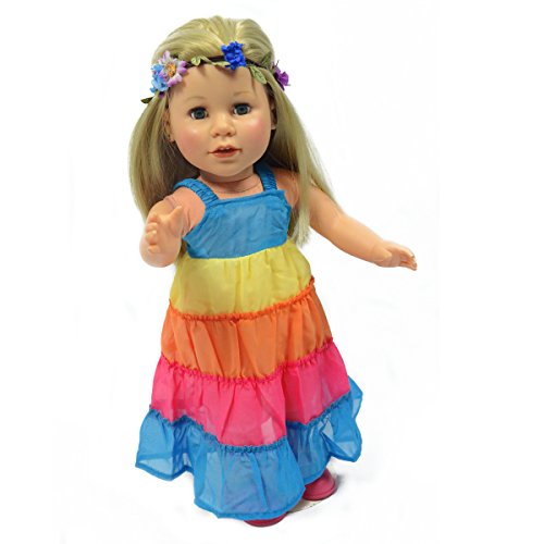 -. Feature : tiered rainbow colored Maxi Sundress for 18 inch Dolls Dolls / elastic shoulder straps to hold the dress snug and secure / fits AMERICAN GIRL and 18 INCH DOLLS / Designed in the USA by The New York Doll Collection / hair accessories and doll shoes sold separately