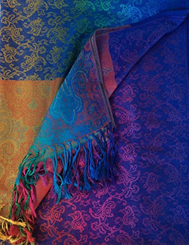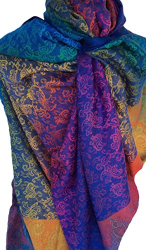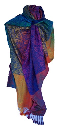 Binding : Apparel Product Description Elegant Pashmina Scarves/Wraps/Shawls. We have searched the world to bring you the best design and luxurious quality available. Elegant soft cashmere,silk viscose blend to drape around shoulders or tie in any one of many styles. Enjoy the height of fashion, or simply keep warm and cozy with gorgeous colors and classy amazing patterns and designs.best dry cleaned. Enjoy several. You will love the soft luxurious feel against your skin. Upgrade your wardrobe with savoir faire Panache ! Show your style while you transform a plain outfit to couture. ? Generous sizing measures 76" by 29" plus 3" fringe on both ends. Pattern is "Rainbow". Beautiful shades of Greens, purples,, blues,pinks, touch of orange and yellow, to go with everything 0