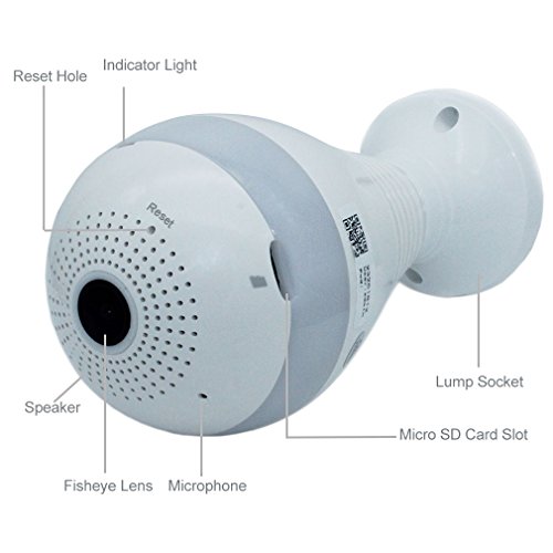 -. Title : Wifi Light Bulb IP Camera for Home Security, 360° Panoramic Fisheye 1080P Wireless Hidden Surveillance with LED Lights SD Card Recording,Two-way Audio,Support iPhone/Android Phone/iPad Remote Monitor