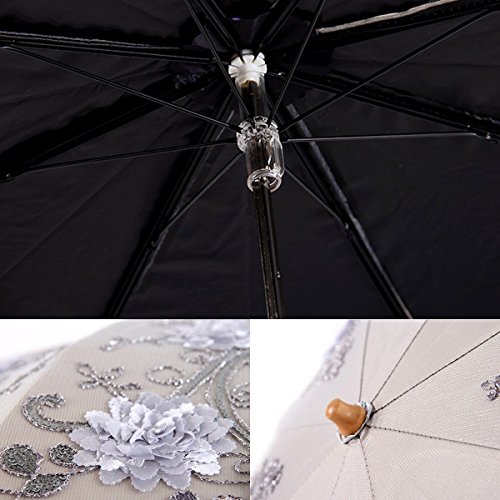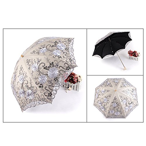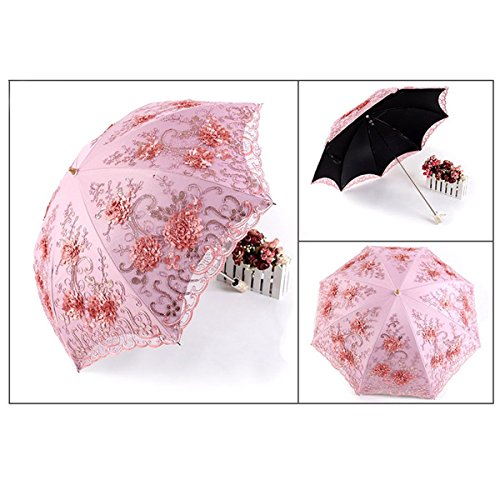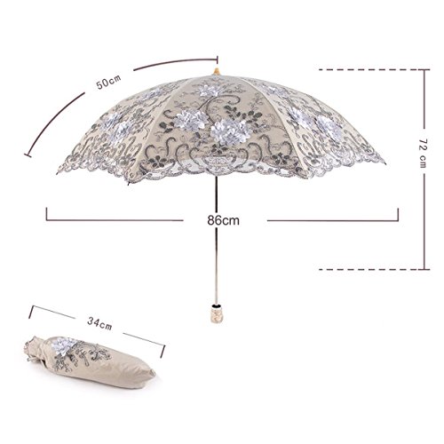 -. Brand : Uniqueen -. Department : womens -. Feature : Light weight and compact; perfect design that¡¯s ideal for carrying on the move. / Measures just 34cm when collapsed, perfect for carrying in a bag without weight or bulk! / Measures a generous 86cm when fully open for the perfect coverage! / Super strong and windproof -. ProductGroup : Apparel -. ProductTypeName : LAGE -. Title : Uniqueen Womens Folding Travel Umbrella Lightweight Parasol Upscale Lace Flower Anti-UV