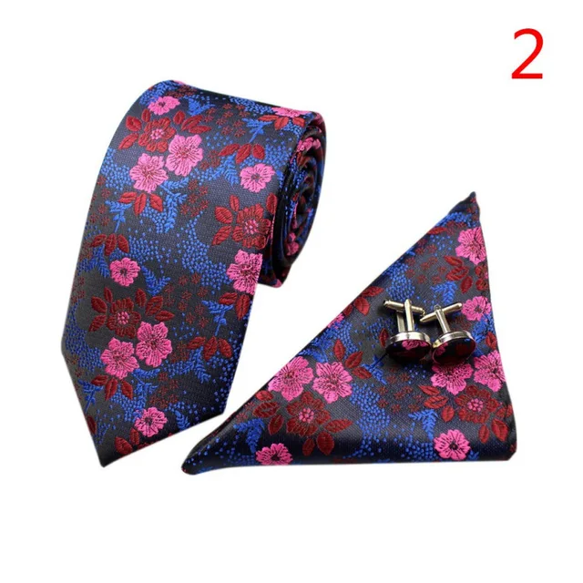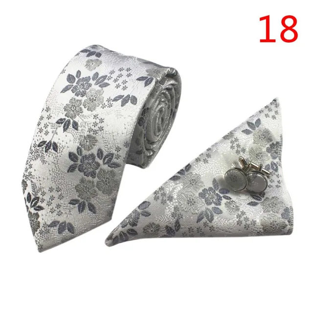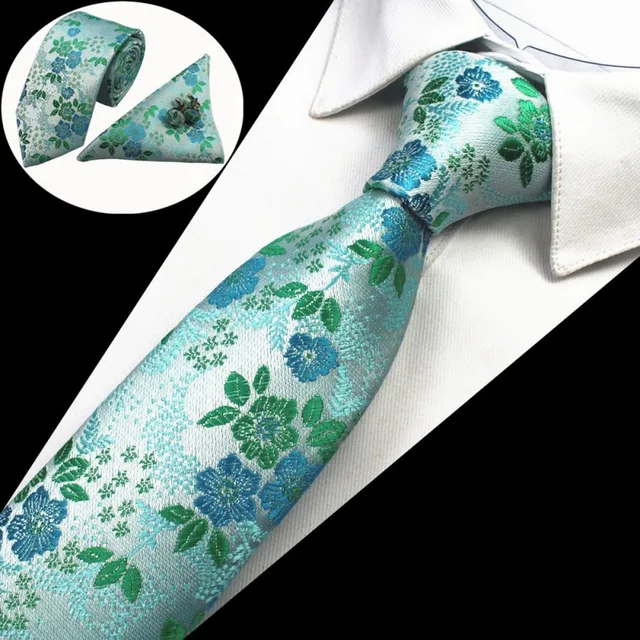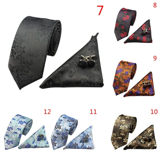 | [해외]꽃 실크 자카드 넥타이 Gravata Corbatas 손수건 커프스 넥타이 세트 남성 정장 웨딩 |