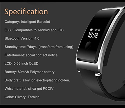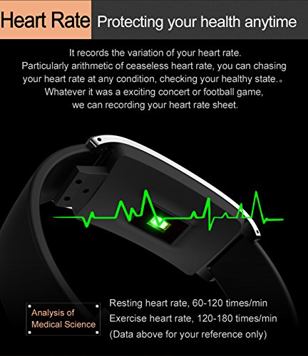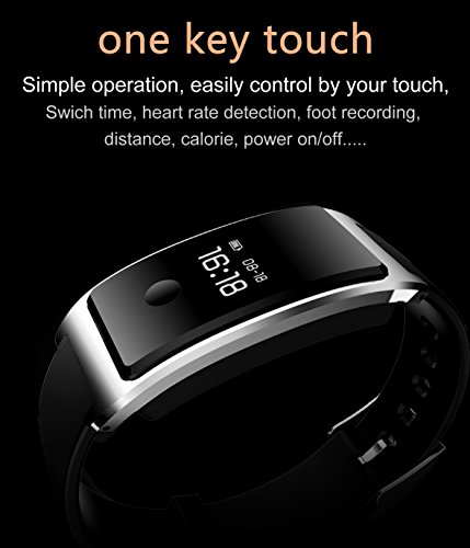 -. Feature : 【MAIN FUNCTION】Dynamic Heart Rate Monitoring, Sleeping monitor, pedometer, distance, calories , step counter, time / date display, sedentary reminder, alarm clock, phone calls reminder(caller name caller ID), SMS,QQ, Wechat notification,and etc. / 【USER FRIENDLY DESIGN】 Alloy Housing, aviation level quality:Hardness, wear-resisting, anti-corrosion,rust-proof, alluy frame. finishing by several CNC artists, to creating iron fabric; Host is equipped with a standard USB port, easy to get charged via Laptop / PC. Built-in 100 mAh rechargeable battery, Long working and standby time. / 【EASY TO OPERATE AND WATCH】OLED touch screen design, simply One Key touch to Switch function, easily control by your touch, Swich time, heart rate detection, foot recording, distance, calorie, power on/off... and turn over your hand to light screen up to read time. / 【HIGH-END HEART RATE MONITOR】Adopted newest HR sensor (Kionix kx022-1020) for more accurate, effective and reliable HR monitor. 24-hour real time HR monitor together with HR chart showing visually your fitness conditions, offers you insights into your fitness trends for sharing among friends and family. / 【BIGFOX WARRANTY】You can get warranty within 12-month. please contact us when you need us!