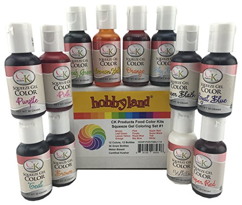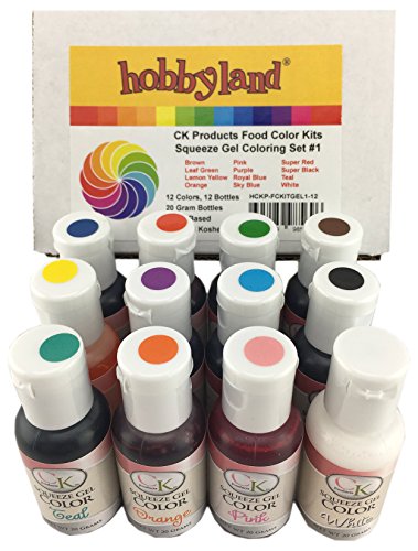 Hobbyland CK Products Food Color Kits (Squeeze Gel Set 1, 12 Colors, 20 Grams Bottles, Primary and Secondary Colors, Professional Set)