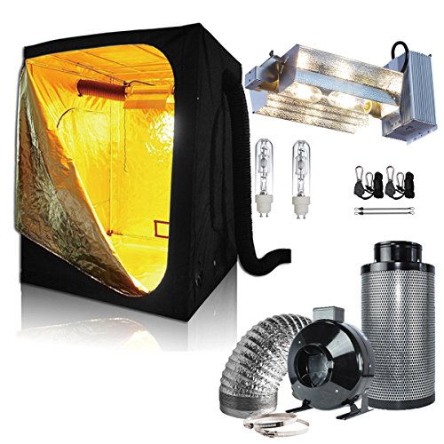 -. Feature : CMH 630W Grow Light Kit+60''x60''x80'' 600D Mylar Grow Tent+6" Inline Fan Carbon Air Filter Ducting Combo for Hydroponic Indoor Plant Growing System / One bulb (3100k bulb) provides the full light spectrum, so it can be used for both veg and bloom stages. / Reflective: 96% highly reflective waterproof diamond mylar (enhance the reflective effect)/ Durable: Heavy duty 600D lightproof oxford cloth / Use Coal Based activated carbon environmentally friendly materials and Carbon Layer Thickness: 1.5 inches / 1xCoal Based Activated Carbon Air Filter/1xChangeable Velcro Pre-filter/2x Elastic Ropes/1xSilver/Silver Flex Ducting/1xInline Fan/2xSteel Hose Clamps