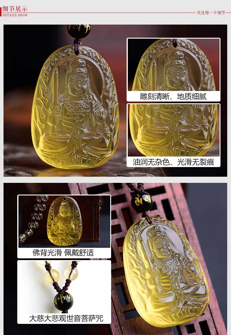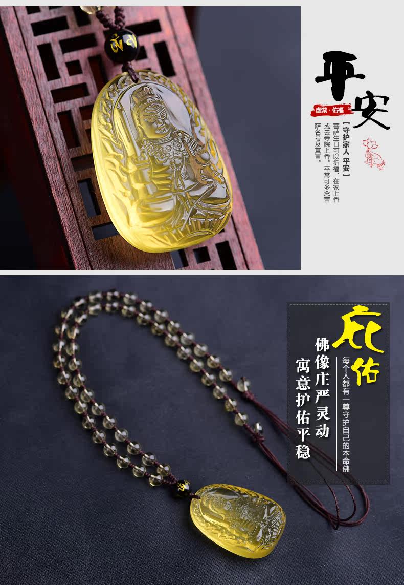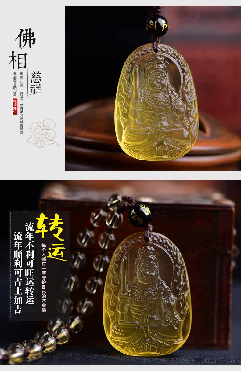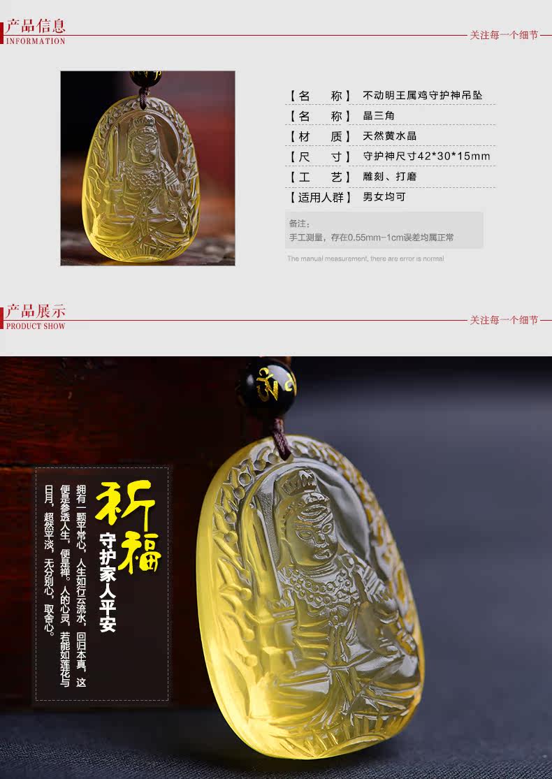 开光天然黄水晶守护神本命佛吊坠 不动尊菩萨生肖鸡挂件男女项链