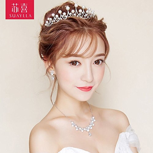 Product DescriptionGeneric The new bride headdress crown tiara tiara necklace earring three-piece fitted wedding jewelry Korean married wedding hair accessories0