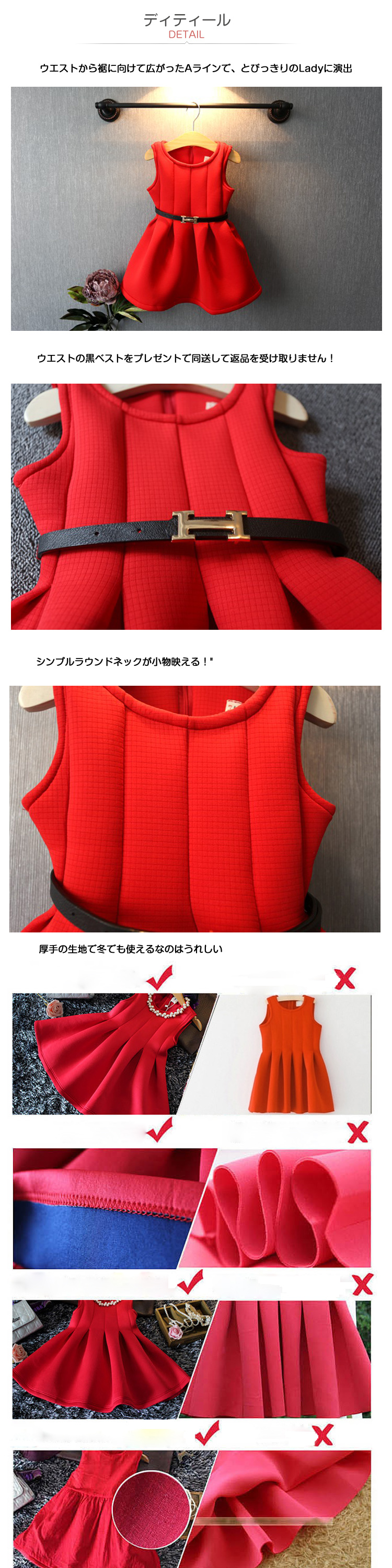 | カワイイお洋服のつぎに気になるのは、やっぱり目を付く赤ドレスです!一枚でもっと可愛らしく!ウエストから裾に向けて広がったAラインで、とびっきりのLadyに演出?オトナな甘さが心をくすぐる1着です↑^ノースリーブなのでインナーによって違い表情を出します!インナーにタートルカットソーやニットなどとあわせてコーデ簡単できる!ウエストのベストをプラスだけでお姉さん風なイメージにクリスマスパーティーやコンサート、ダンスなどにも!特別な日にどうぞ? | |
