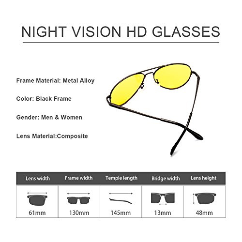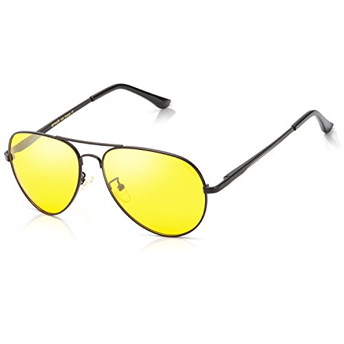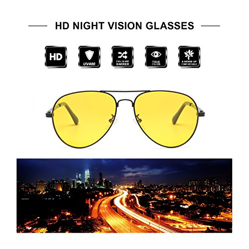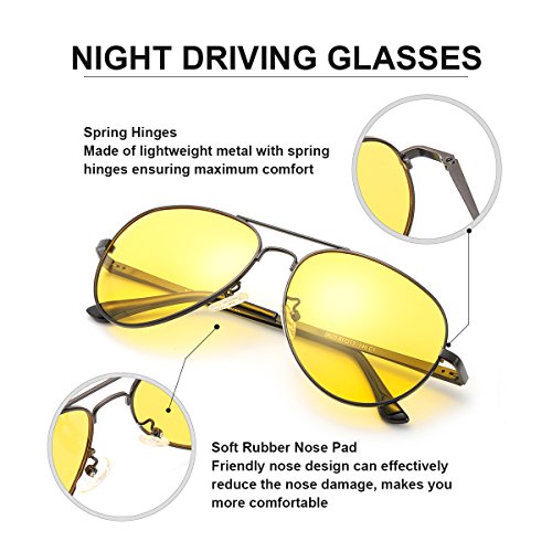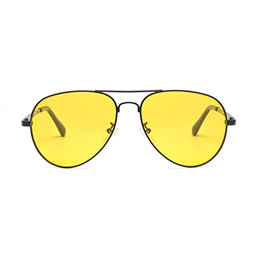 Aviator Night Vision Glasses for Driving Eyewear – Fashion Polarized Safety Best Sunglasses - Anti Glare HD Yellow Lens
