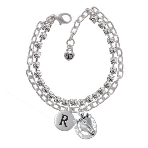 - Title : Horse Head with Horseshoe - 2 Sided Double Strand Initial - R - Madison Charm Bracelet